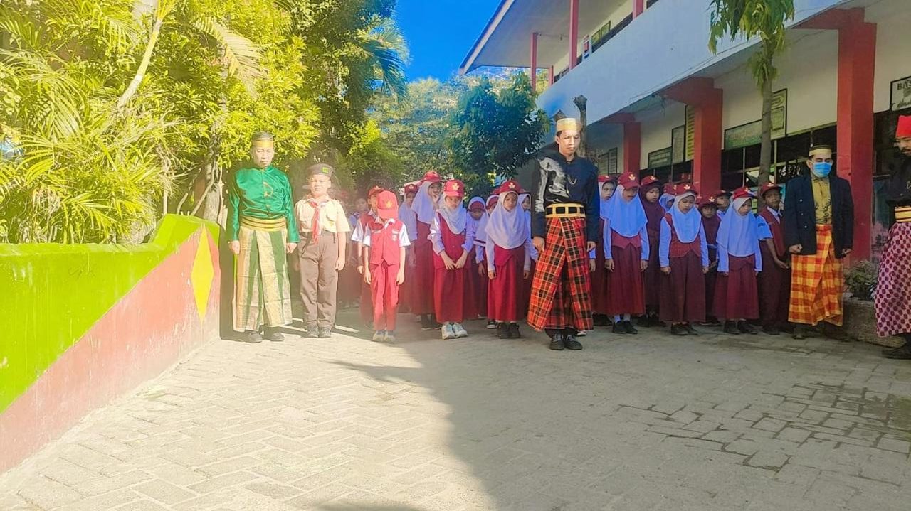 Pengibaran bendera merah putih diiringi lagu Indonesia Raya dan nuansa pakaian tradisional atau pakaian adat suku Bugis Makassar kami ajak seluruh peserta didik untuk menjiwai semangat perjuangan para pahlawan dan menjadikannya inspirasi dalam kehidupan,”