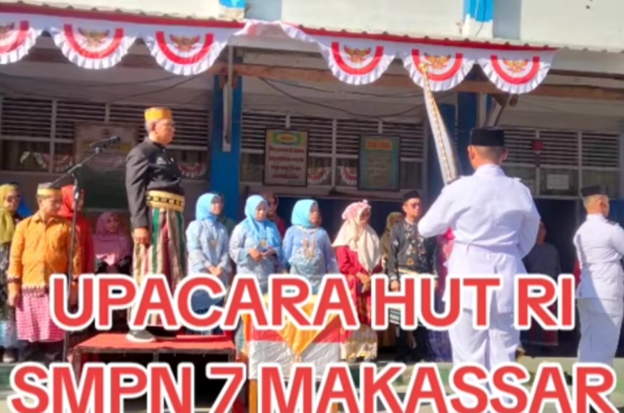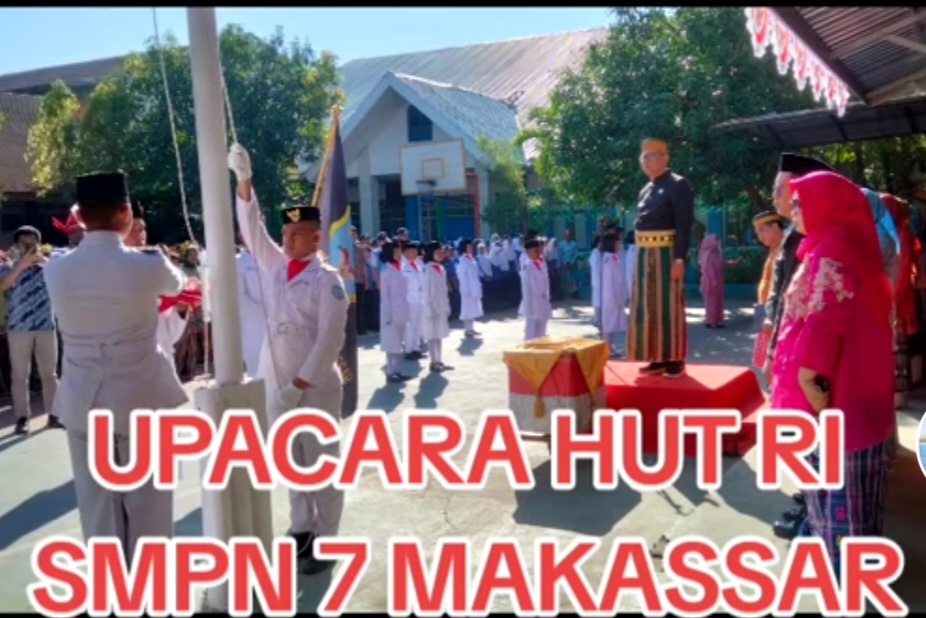 BN Online, Makassar—Upacara peringatan Hari Ulang Tahun (HUT) Kemerdekaan RI ke-79, UPT SPF SMP Negeri 7 Makassar Gelar Upacara Bendera, Sabtu (17/08/2024).