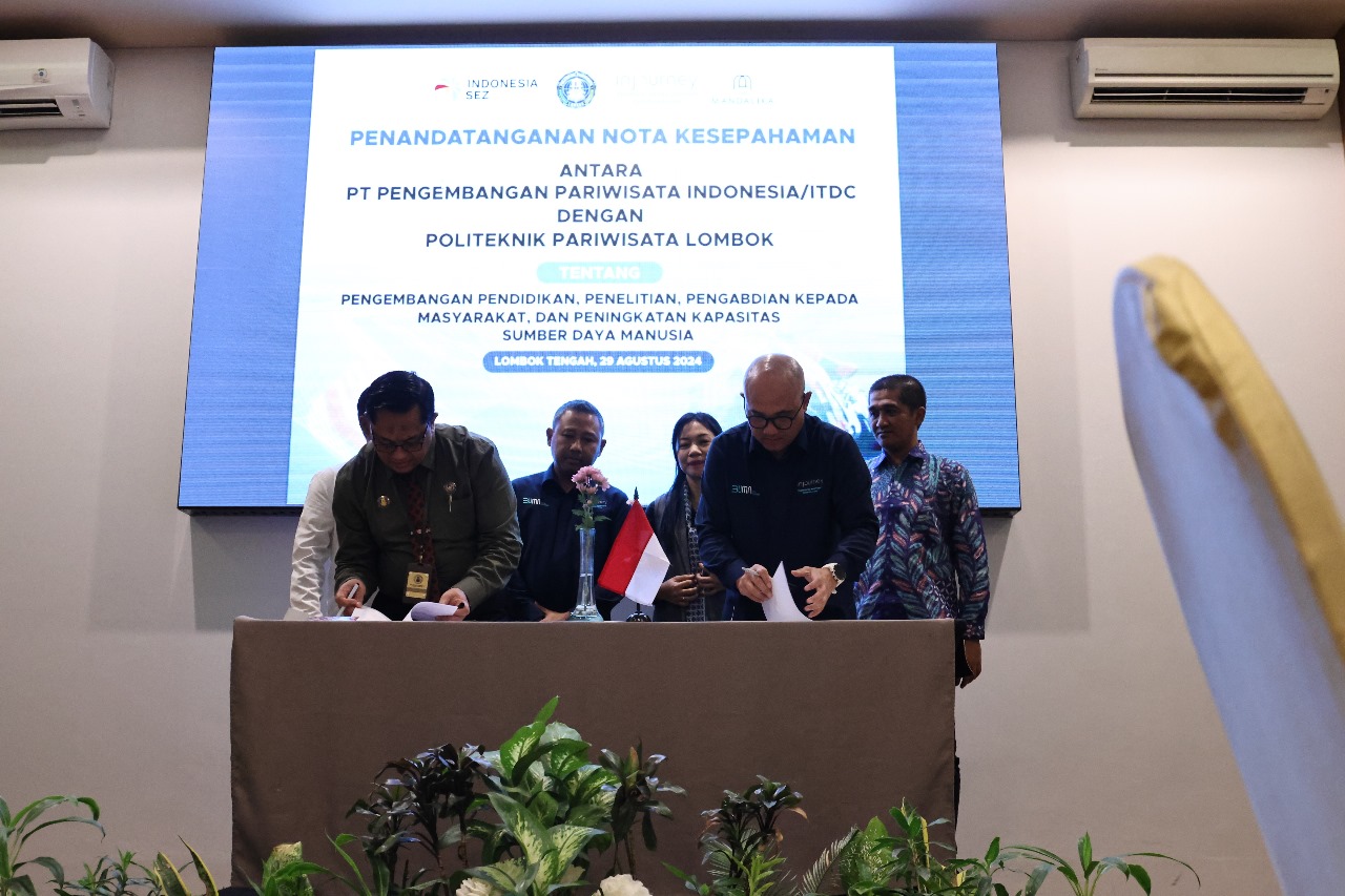 Sementara Direktur Utama ITDC Ari Respati, menyampaikan “Kerja sama ini merupakan wujud nyata komitmen bersama dalam mendukung pengembangan pendidikan, penelitian, pengabdian kepada masyarakat, serta peningkatan SDM, khususnya di bidang pariwisata. Kami berterima kasih kepada Politeknik Pariwisata Lombok atas inisiatif dan kolaborasi yang telah terjalin. Melalui kerjasama strategis dengan institusi pendidikan seperti Politeknik Pariwisata Lombok, diharapkan akan tercipta tenaga kerja yang unggul dan siap bersaing di kancah nasional maupun internasional.”