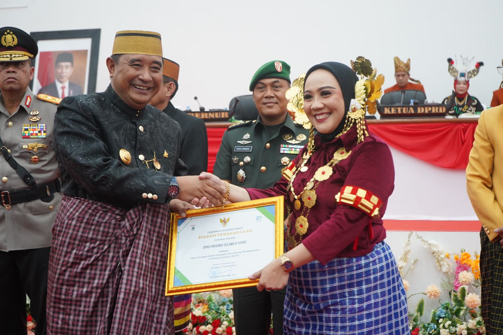 Ketua DPRD Sulbar Dr Hj Sitti Suraidah Suhardi dalam sambutannya menyampaikan penghormatan setinggi-tingginya kepada para pendahulu yang telah memperjuangkan terbentuknya Provinsi Sulbar.