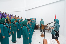 Setelah prosesi pengukuhan, Indira menyampaikan ucapan selamat kepada seluruh Ketua Pembina Posyandu Kecamatan yang baru saja dilantik.