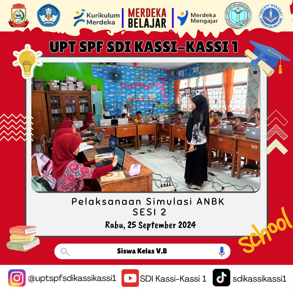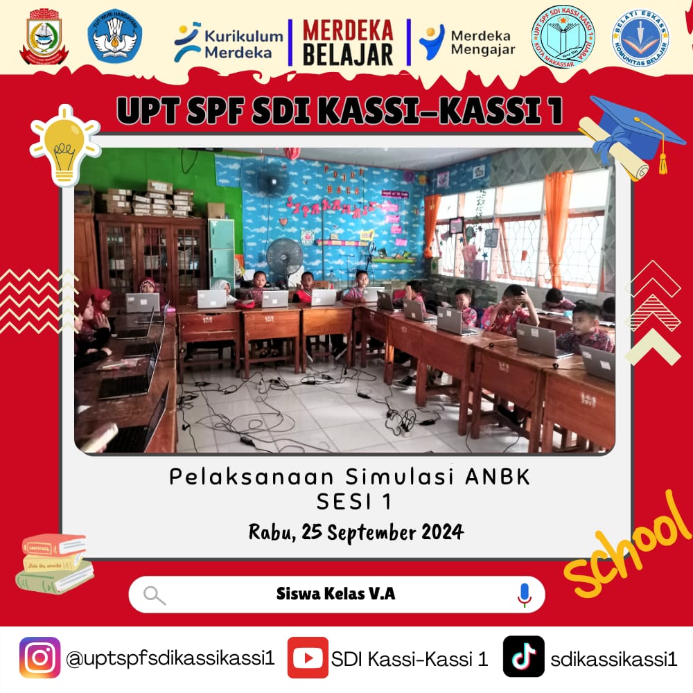 Simulasi ANBK ini di bagi menjadi dua sesi di karenakan keterbatasan media komputer/ laptop yang tersedia di UPT SPF SD Inpres Kassi-Kassi 1 Makassar. Siswa yang mengikuti simulasi ANBK ini adalah bukan siswa pilihan yang di tentukan oleh pihak sekolah melainkan siswa yang terpilih secara acak oleh sistem Dapodik Kementrian Pendidikan dan Kebudayaan, Riset, dan Teknologi (Kemendikbudristek).