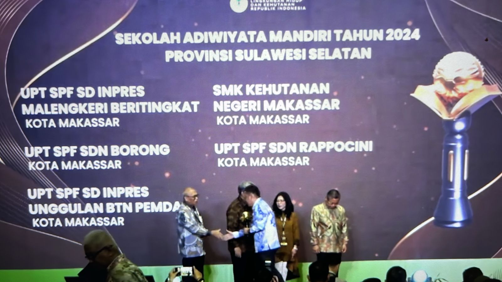 Dalam kesempatan ini, sebanyak 205 sekolah menerima Piala Adiwiyata Mandiri, dan 512 sekolah lainnya mendapat Piagam Adiwiyata Nasional.