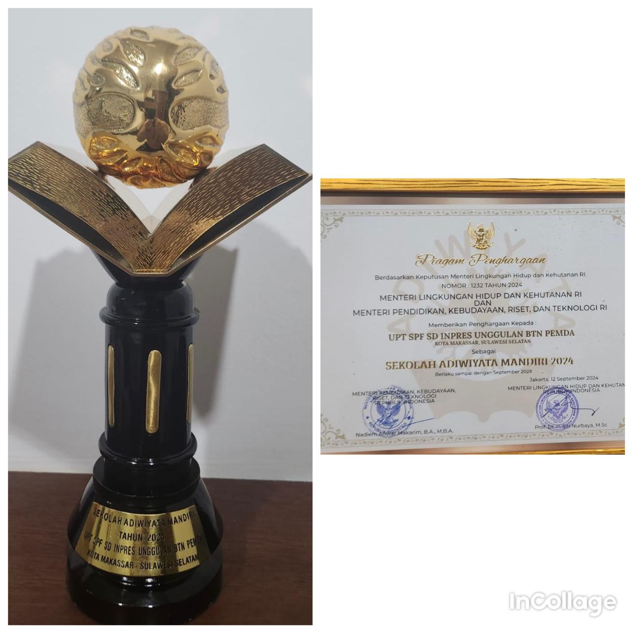 Selain menerima piala, UPT SPF SDI Unggulan BTN Pemda Makassar juga mendapat sertifikat yang di tandatangani oleh Nadiem Makarim Kemendikbudristek, dan Sitti Nurbaya Menteri LHK Ri, serta ini diterima langsung oleh Kepala UPT SPF SDI Unggulan BTN Pemda Makassar, Isman, S. Pd, M. Pd.