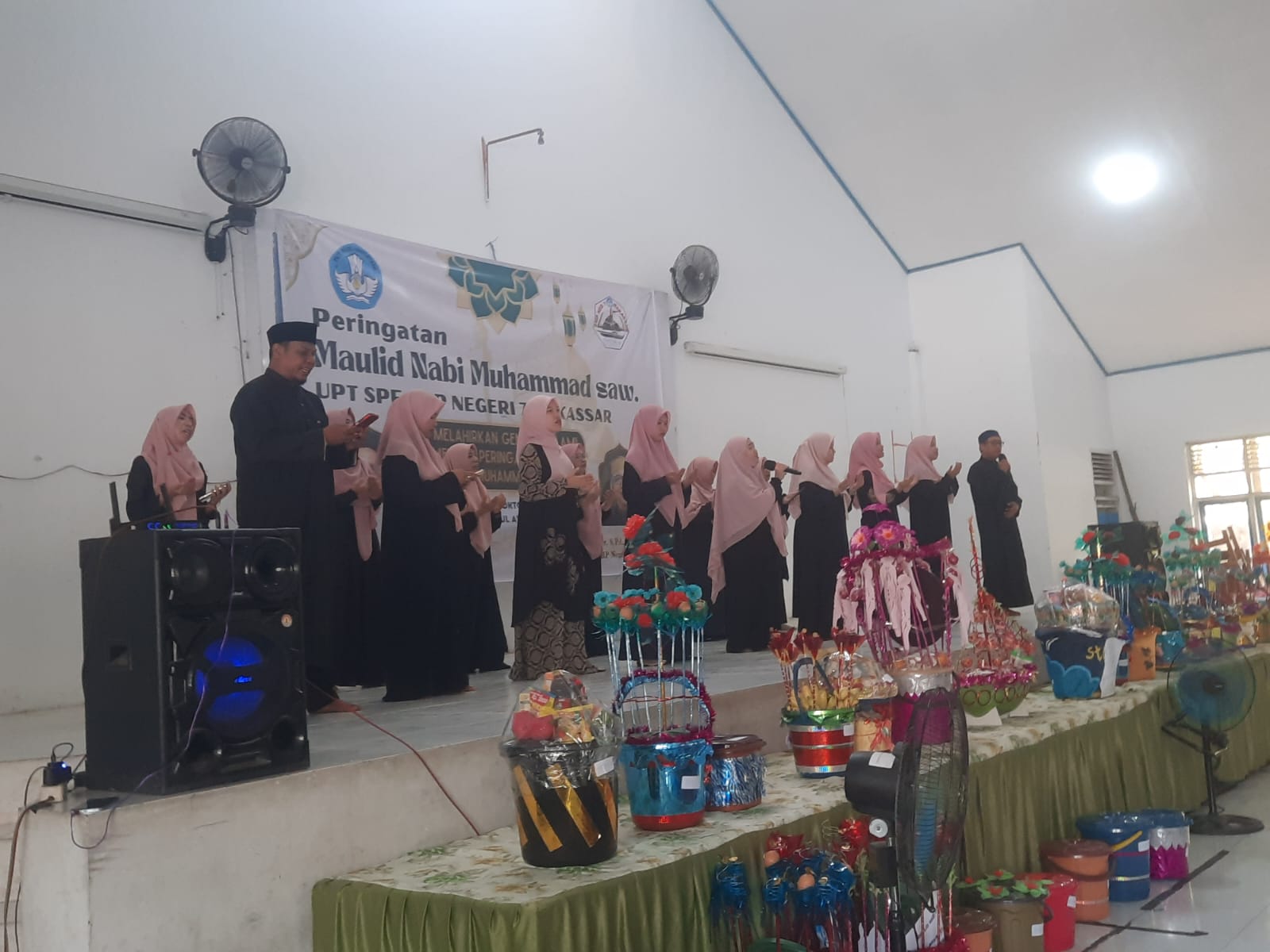 Tidak ada perayaan Maulid yang lengkap tanpa nuansa keagamaan. Kelompok hadroh UPT SPF SMP Negeri 7 Makassar, tampil dengan semangat yang luar biasa. Dengan musik hadroh yang memukau, mereka mampu menciptakan atmosfer yang khusyuk dan mendalam. Musik ini mengiringi doa dan penghormatan kepada Nabi Muhammad SAW, mengingatkan semua orang tentang keagungan dan kasih sayang beliau.