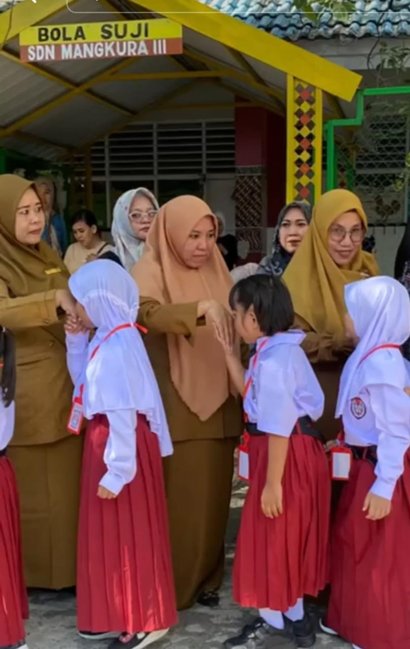 BN Online, Makassar– Dalam suasana penuh kehangatan, para guru UPT SPF SDN Mangkura III Makassar menyambut siswa-siswi mereka sebelum memulai kegiatan pembelajaran, Senin pagi. Tradisi ini ditandai dengan salim tangan siswa kepada guru sebagai bentuk penghormatan dan rasa hormat terhadap pendidik, sekaligus menciptakan hubungan yang lebih erat antara guru dan murid., Senin 21 Oktober 2024.