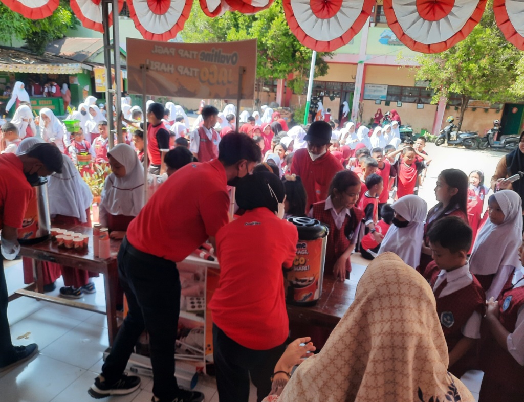 Dalam kegiatan ini, siswa-siswi tampak antusias menikmati susu Ovaltine yang dibagikan secara gratis. Kegiatan ini tidak hanya menjadi momen kebersamaan, tetapi juga bentuk edukasi kepada siswa akan pentingnya nutrisi dalam pertumbuhan dan perkembangan mereka.