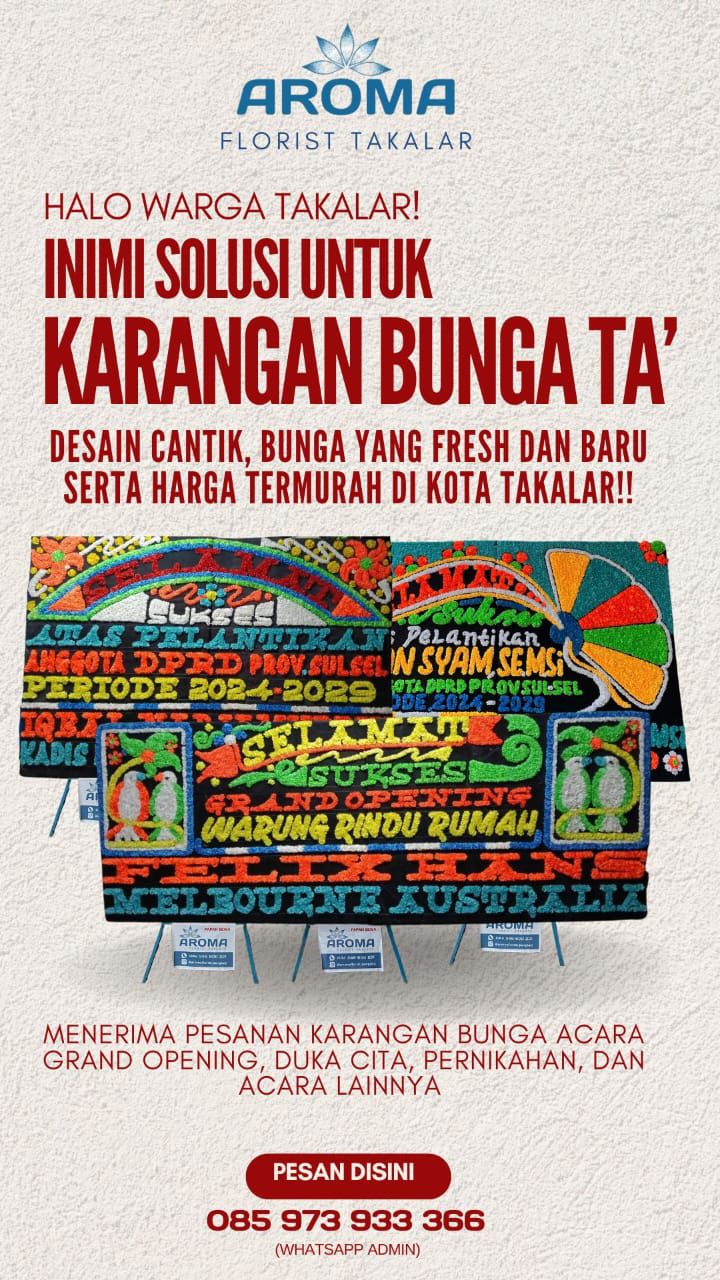 Fikri,Owner Aroma florist mengatakan, ” Aroma florist Takalar merupakan cabang ke 3 setelah sebelumnya kami sudah membuka untuk daerah makassar dan pangkep, dengan hadirnya karangan bunga aroma florist ini harapan kami mempermudah masyarakat, kelompok organisasi ataupun instansi baik pemerintah dan swasta dalam mengiripkan papan ucapan yang tentunya bagian dari apresiasi dan bentuk menjaga silaturahmi antar sesama.” Kata Fikri