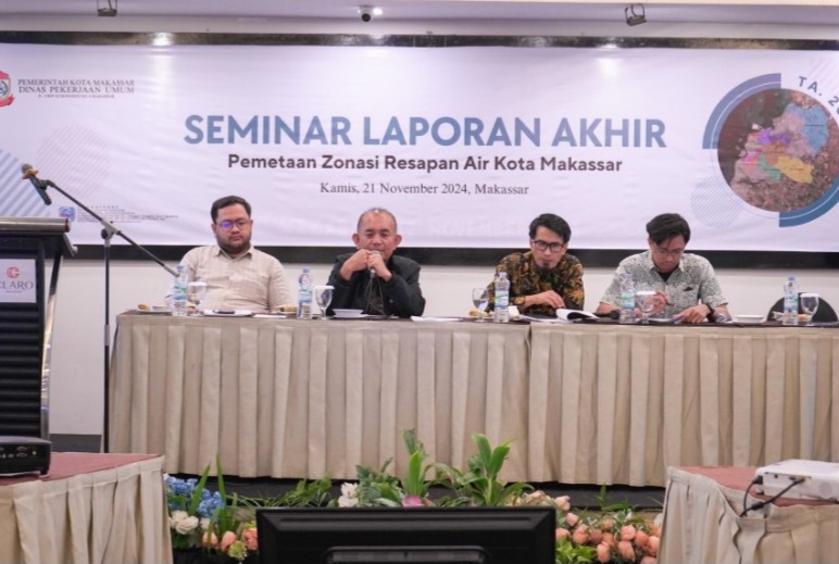 BN Online, Makassar– Dinas Pekerjaan Umum (PU) Kota Makassar menggelar seminar akhir bertajuk “Jasa Konsultansi Berorientasi Layanan – Jasa Studi Penelitian dan Bantuan Teknik Pemetaan Zonasi Resapan Air Kota Makassar” di Hotel Claro. Kegiatan yang berlangsung pada Kamis (21/11/2024) ini merupakan bagian dari rangkaian upaya strategis Pemerintah Kota Makassar dalam menata pengelolaan air melalui zonasi resapan air.