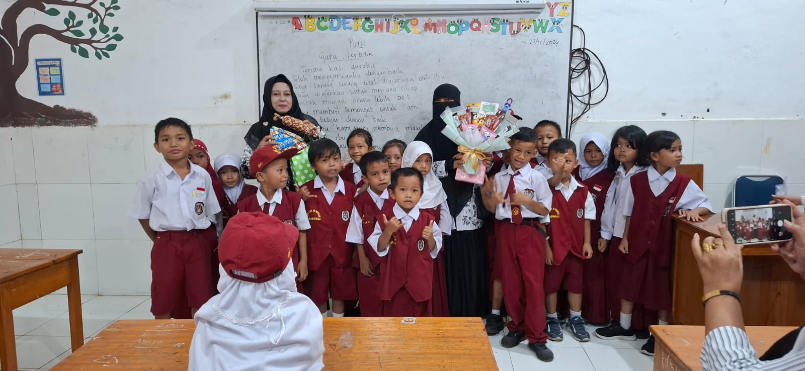 Rangkaian peringatan Hari Guru Nasional di UPT SPF SDN Rajawali Makassar diakhiri dengan sesi foto bersama dan pembacaan doa. Kegiatan ini diharapkan mampu membangun semangat kebersamaan antara guru dan siswa serta meningkatkan rasa bangga menjadi bagian dari dunia pendidikan.
