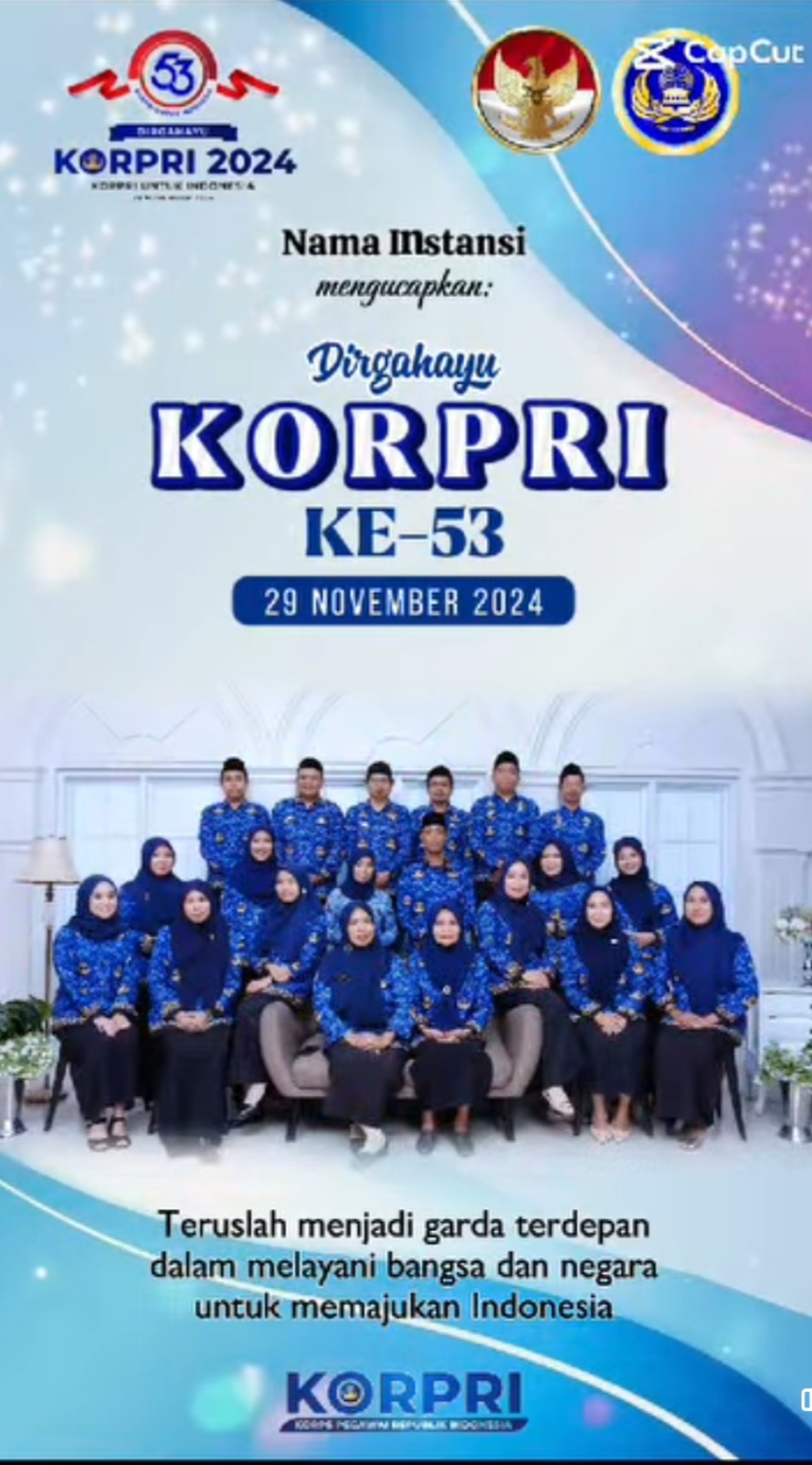 “Kami mengucapkan Dirgahayu KORPRI yang ke-53. Semoga di usia ini, KORPRI terus menjadi garda terdepan dalam mewujudkan ASN yang unggul dan berintegritas, yang mampu membawa perubahan positif bagi bangsa dan negara,” ujar Hairiah.