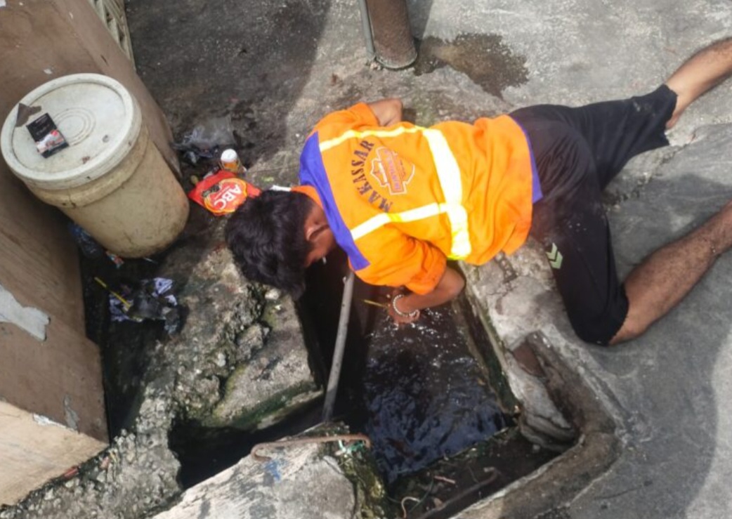 Terlihat di lokasi tepatnya di JL. Kapoposang, Satgas drainase Bontoala, melakukan pembersihan saluran drainase dengan mengangkat sedimen dan sampah plastik yang menghambat aliran air.