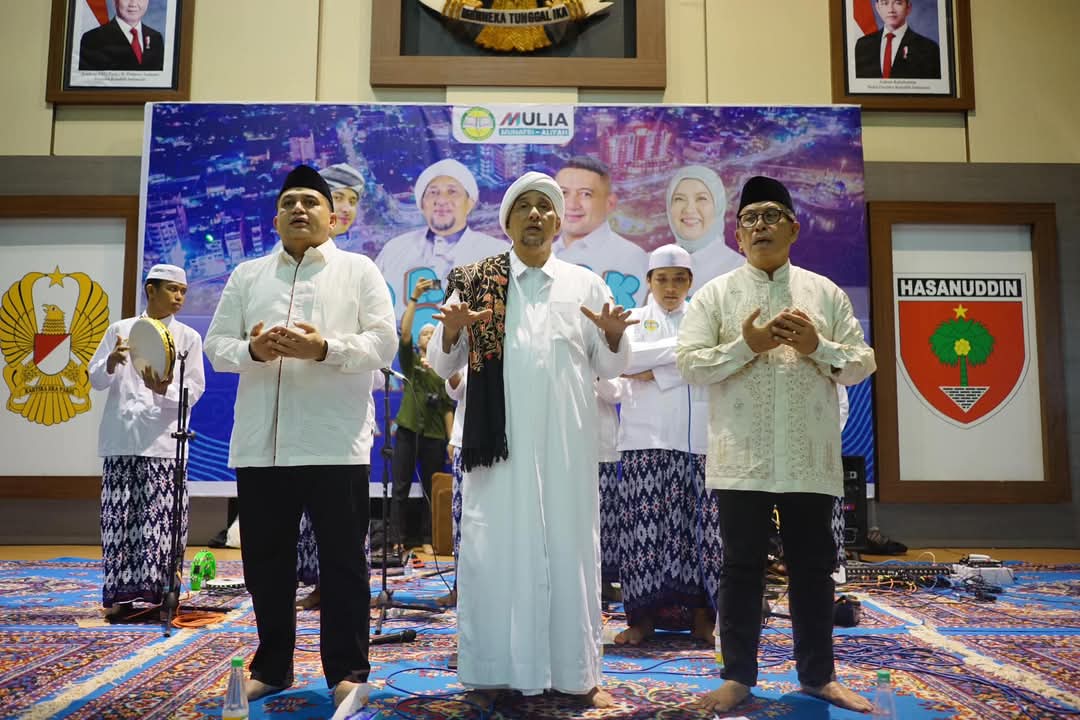 BN Online, Makassar,Malam ini, Gedung Balai Prajurit Manunggal menjadi saksi penuh haru dan syukur atas kemenangan pasangan Munafri-Aulia (MULIA) yang telah dipercaya masyarakat untuk memimpin Makassar ke arah yang lebih baik. Acara Doa, Dzikir, Sholawat, dan Tasyakuran ini digelar sebagai ungkapan rasa syukur atas hasil dari kerja keras, doa, dan dukungan luar biasa dari seluruh lapisan masyarakat.24 Desember 2024.