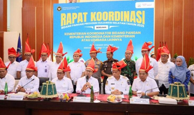 BN Online, Makassar -Wali Kota Makassar Moh Ramdhan Pomanto menghadiri Rapat Koordinasi bersama Menteri Koordinator Bidang Pangan Zulkifli Hasan, di Aula Tudang Sipulung Rujab Gubernur, Jumat (17/1/2025).