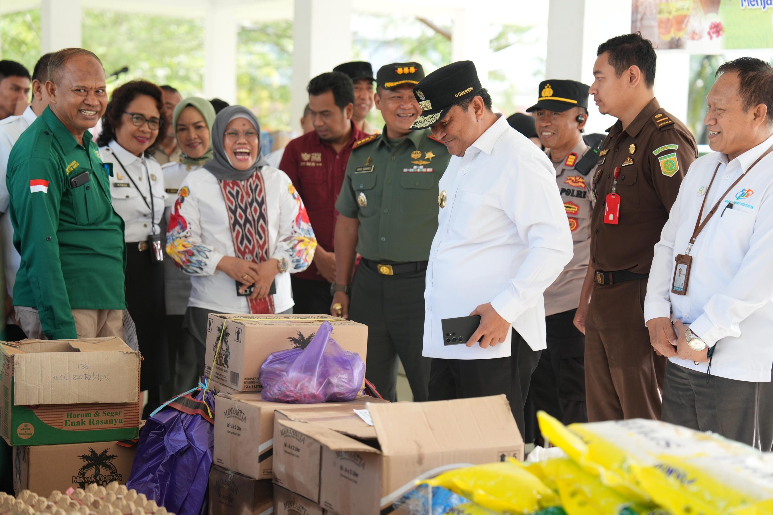 BN Online, Mamuju — Pj Gubernur Sulbar Bahtiar Baharuddin bersama Tim Pengendali Inflasi Daerah Provinsi dan Pemkab Mamuju, Forkopimda memantau pelaksanaan Gerakan Pangan Murah (GPM) di Lapangan Ahmad Kirang Mamuju, Provinsi Sulawesi Barat, Rabu 22 Januari 2025.