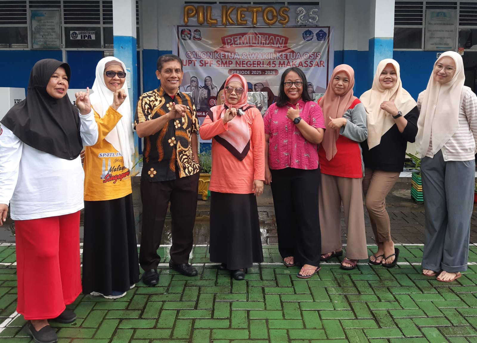 Kepala UPT SPF SMP Negeri 45 Makassar, Hj. Hamriah, S.Pd., M.Pd., menyampaikan apresiasi atas kelancaran dan semangat demokrasi dalam pemilihan ini.