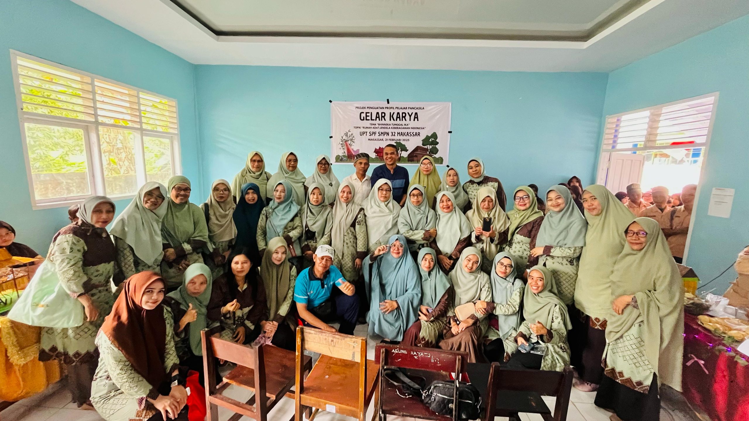 BN Online, Makassar– UPT SPF SMP Negeri 32 Makassar sukses menggelar acara Gelar Karya Projek Penguatan Profil Pelajar Pancasila (P5) dengan tema “Bhineka Tunggal Ika” dan topik “Rumah Adat: Jendela Keberagaman Indonesia”. Acara yang berlangsung pada Jumat, 21 Februari 2025 ini dihadiri oleh Kepala UPT SPF SMPN 32 Makassar, Drs. Husni, beserta para guru, staf, dan siswa-siswi sekolah.