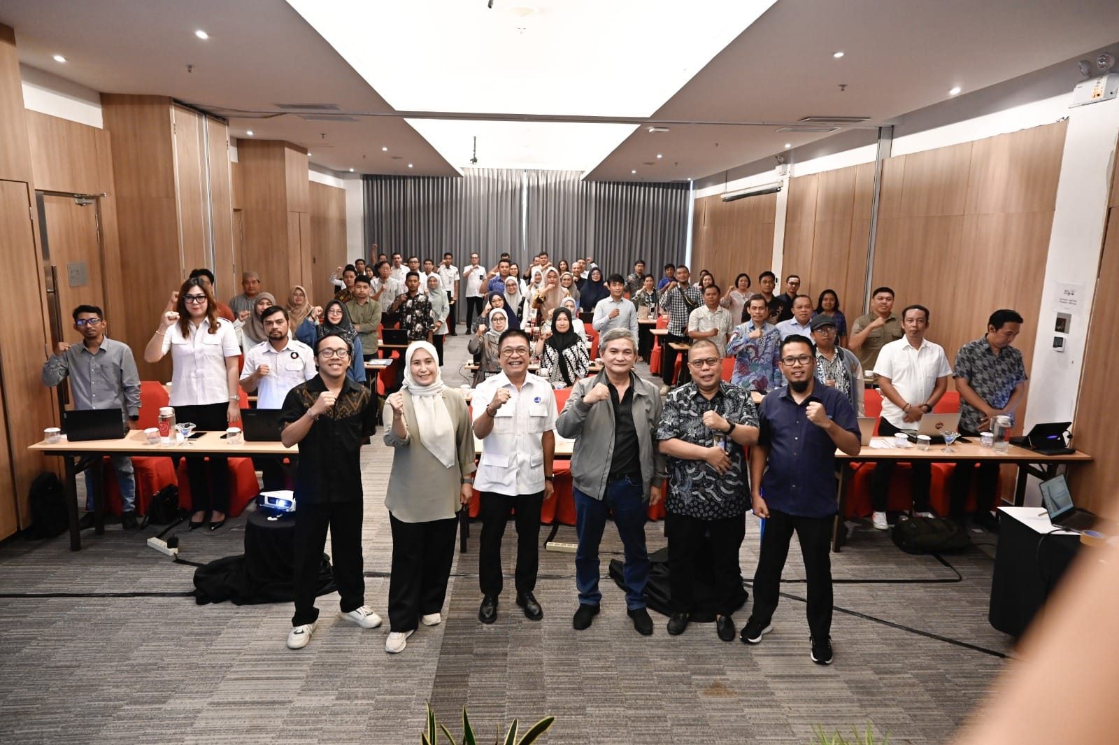 Wakil Ketua Umum Bidang Kelembagaan PP Perpamsi, Beni Iskandar yang juga Direktur Utama Perumda Air Minum Kota Makassar, memberi sambutan sekaligus membuka Bimtek yang diikuti sekitar 100 orang, bertempat di Hotel Ibis Red Maipa, Makassar, Rabu (25/2/2025).