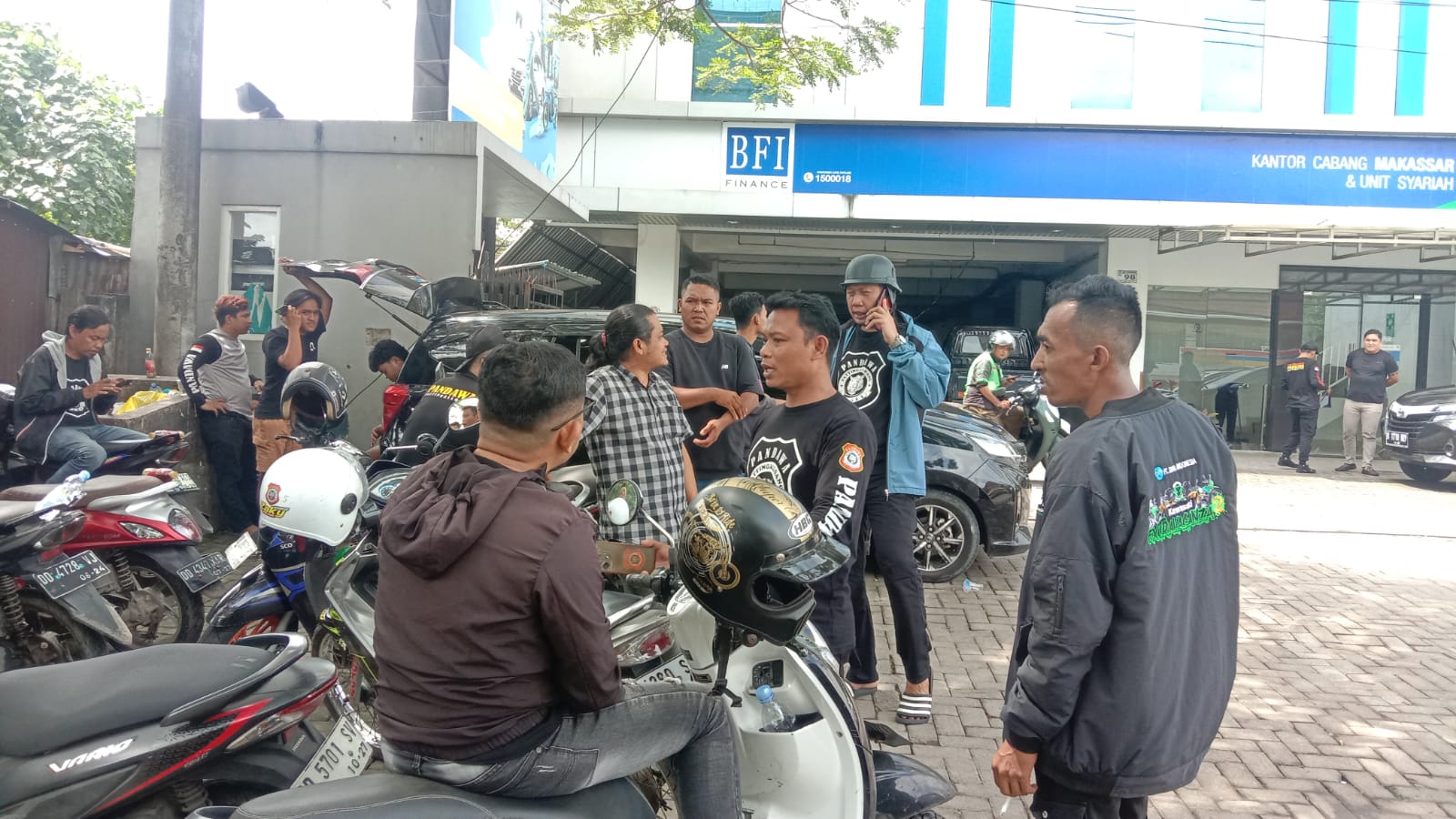 BN Online, Makassar – Sekelompok massa dari organisasi masyarakat (ormas) Pandawa Pattingalloang menggelar aksi protes di kantor cabang BFI Finance, Jalan Aroeppala, Kota Makassar, Rabu (16/4/2025). Aksi ini dilakukan sebagai respons atas dugaan penarikan paksa satu unit mobil milik warga yang diduga dilakukan oleh oknum debt collector dari pihak leasing.