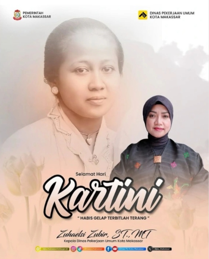 BN Online, Makassar—Kepala Dinas Pekerjaan Umum (PU) Kota Makassar, Zuhaelsi Zubir, ST., MT, bersama seluruh jajaran dan staf, menyampaikan ucapan “Selamat Hari Kartini 2025” kepada seluruh perempuan Indonesia, khususnya di Kota Makassar. Dalam pesannya, Zuhaelsi menekankan semangat Raden Ajeng Kartini sebagai inspirasi untuk mewujudkan perempuan yang kuat, tangguh, dan berwibawa demi Indonesia Maju dan Makassar Mulia., Senin 21 April 2025.