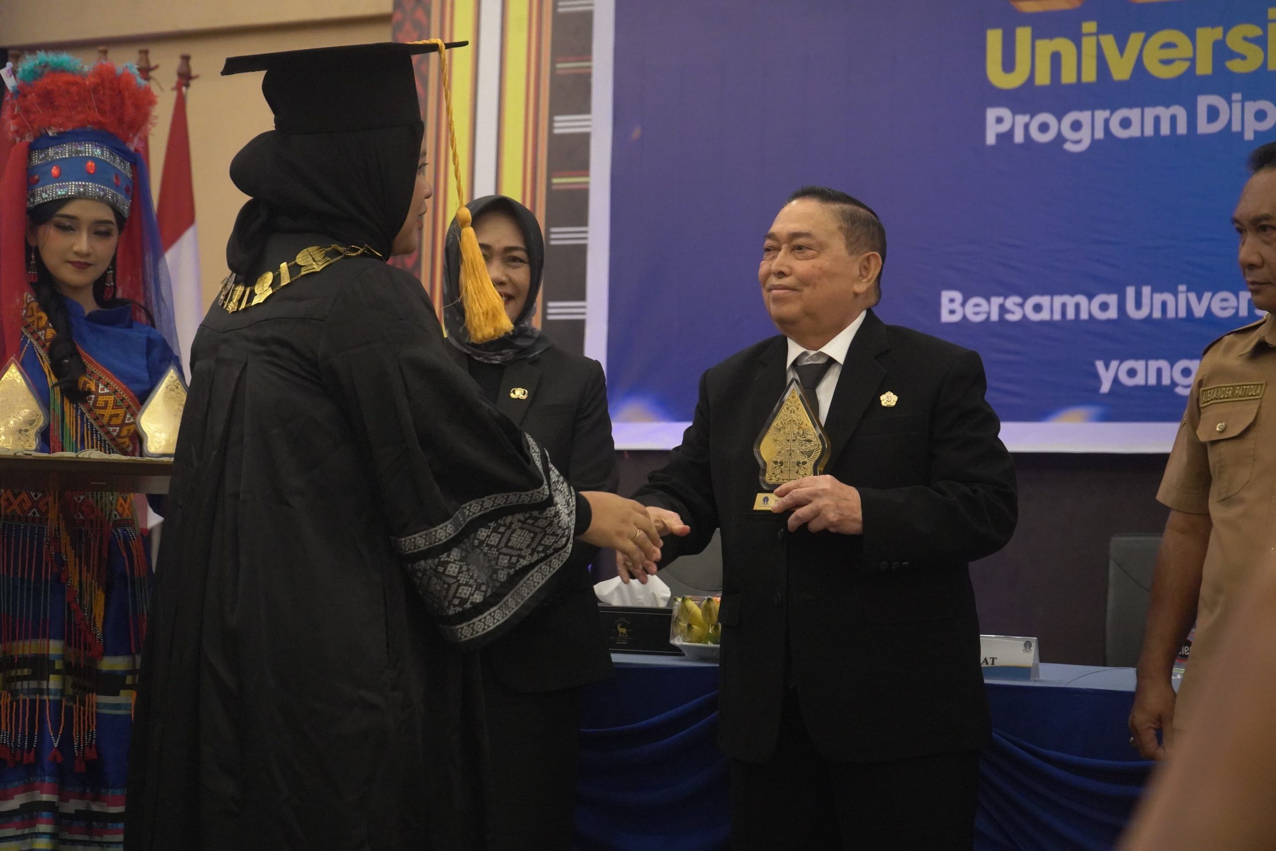 Dekan Fakultas Ekonomi dan Bisnis, Mehrani mewakili Rektor UT menjelaskan, pada acara wisuda ini telah dilakukan penyerahan ijazah atau UPI. Ini merupakan acara yang diselenggarakan UT daerah untuk memberikan kesempatan kepada mahasiswa UT di daerah untuk melakukan wisuda.