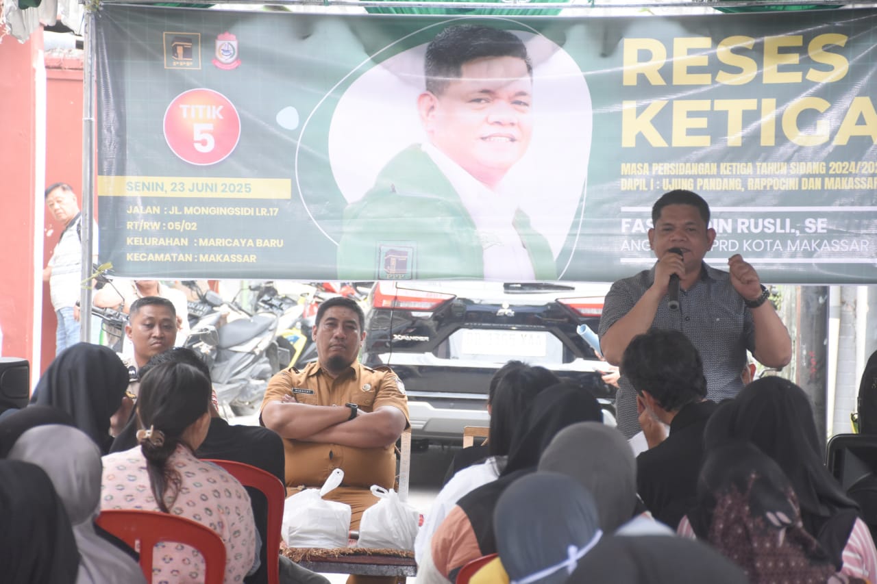 BN Online, Makassar-—Anggota DPRD Kota Makassar, Fasruddin Rusli menggelar Reses Ketiga Masa Persidangan III Tahun 2024 – 2025. Salah satu titik bertemu dengan konstituen yakni Kelurahan Buakana Kecamatan Rappocini.