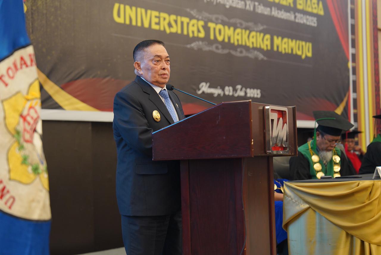 BN Online, Mamuju – Wakil Gubernur Sulawesi Barat (Sulbar), Salim S Mengga, menghadiri prosesi wisuda sarjana strata satu (S1) angkatan XV tahun akademik 2024/2025 Universitas Tomakaka Mamuju, Kamis, 3 Juli 2025.