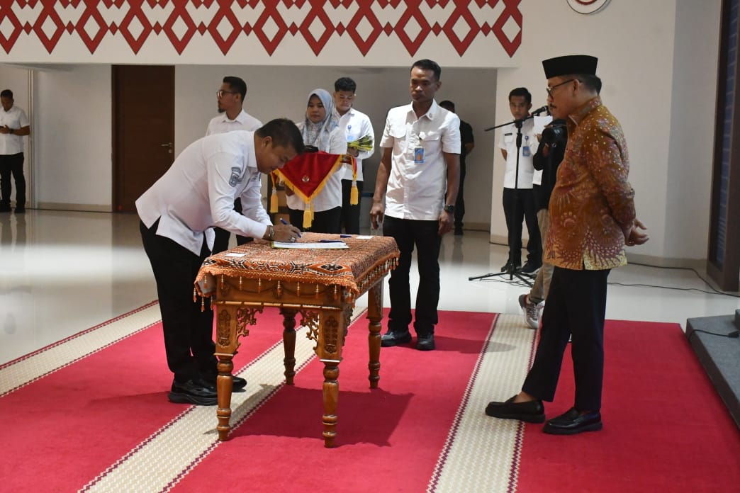 BN Online, Mamuju – Para Pimpinan Organisasi Perangkat Daerah (OPD) Lingkup Pemprov Sulbar melakukan Penandatanganan Pakta Integritas dan Perjanjian Kinerja Pejabat Pimpinan Tinggi Pratama dihadapan langsung Gubernur Sulbar, Suhardi Duka, berlangsung di Ballroom Andi Depu Lantai 3 Kantor Gubernur Sulbar, Rabu, 16 Juli 2025 malam.