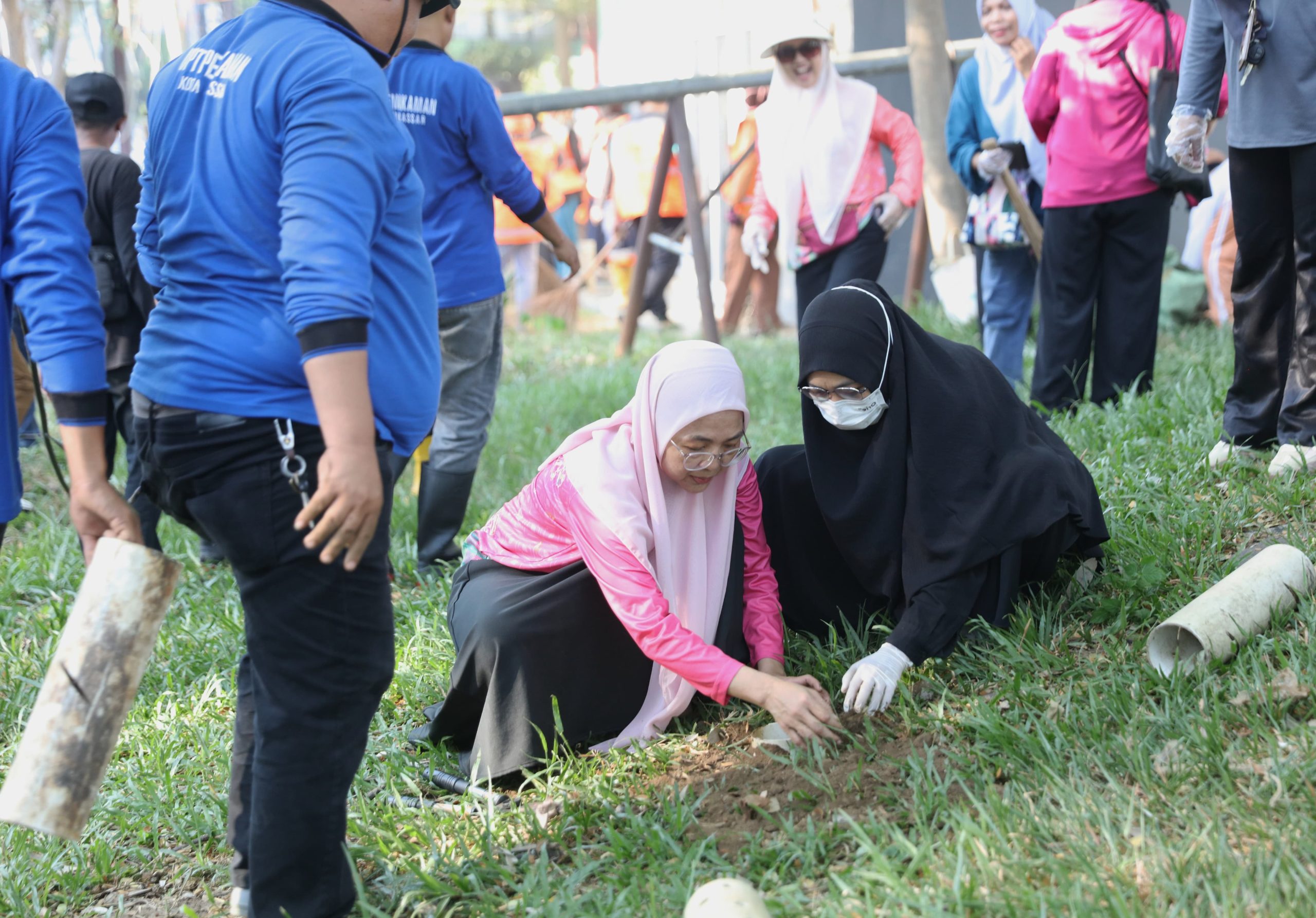 Melinda bersama jajaran pengurus TP PKK, Dekranasda, Pokja Bunda PAUD, Dinas Lingkungan Hidup (DLH) Makassar dan para petugas kebersihan menanam kompos biopori sebanyak 30 lubang ditanam di area taman, masing-masing dengan kedalaman 80 cm hingga 1 meter.