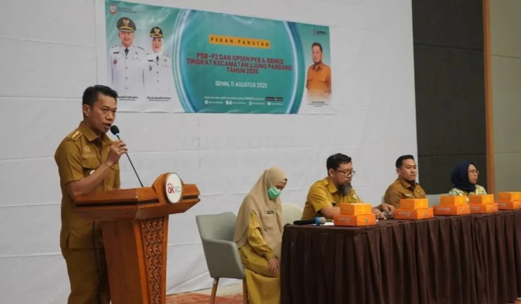 BN Online, Makassar – Camat Ujung Pandang, Andi Husni, S.STP., M.Si, membuka secara resmi kegiatan Pekan Panutan Pajak Bumi dan Bangunan Perdesaan dan Perkotaan (PBB-P2), Opsen PKB, dan Opsen BBNKB Tahun 2025 se-Kota Makassar. Acara ini digelar di Ballroom Kantor Otoritas Jasa Keuangan (OJK) Provinsi Sulawesi Selatan dan Sulawesi Barat, Senin (11/08/2025).