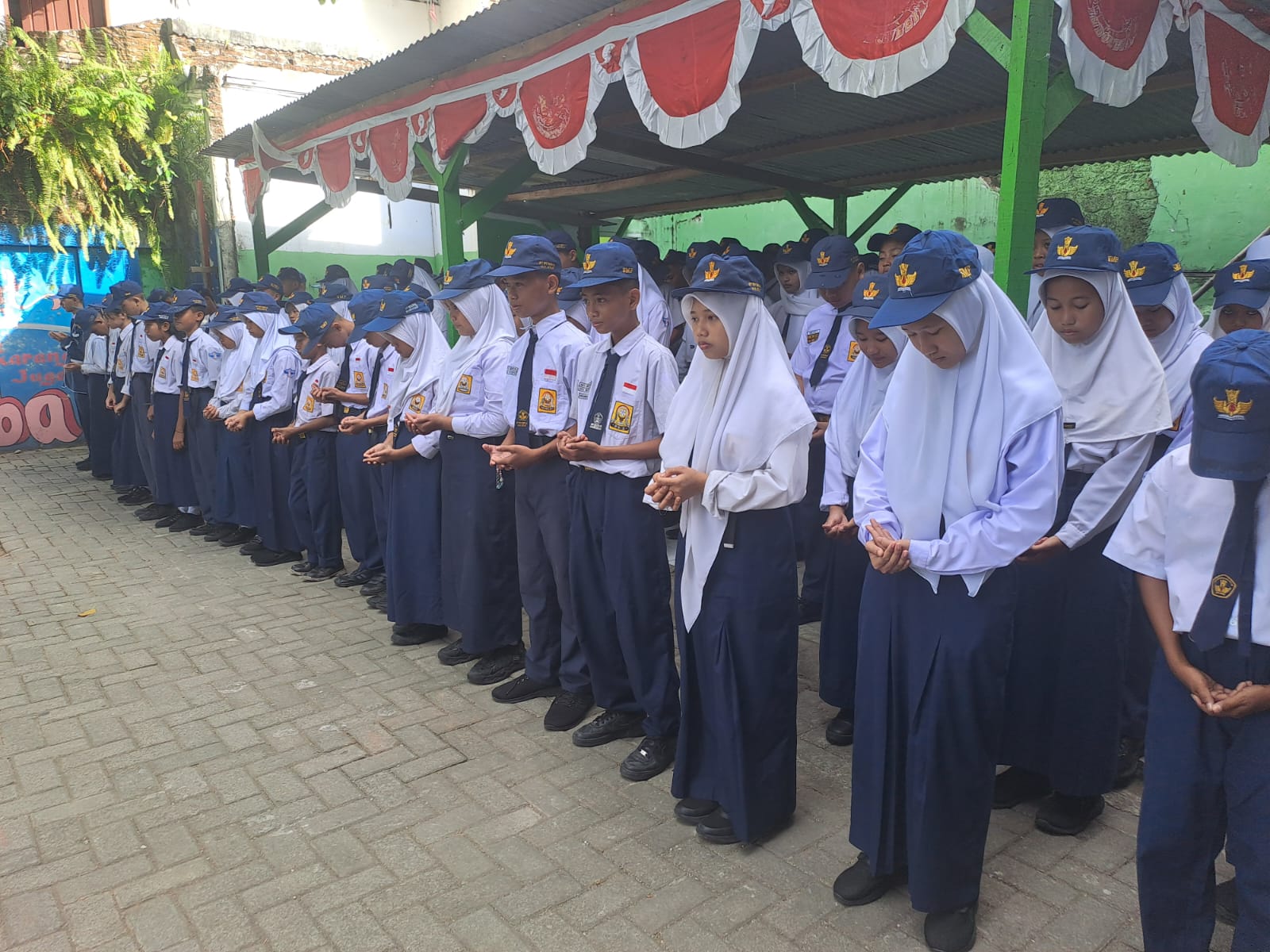 Upacara berlangsung khidmat dengan diikuti oleh seluruh peserta, mulai dari Kepala Sekolah, Wakil Kepala Sekolah, guru dan staf, pengurus komite, serta murid kelas 7, 8, dan 9.
