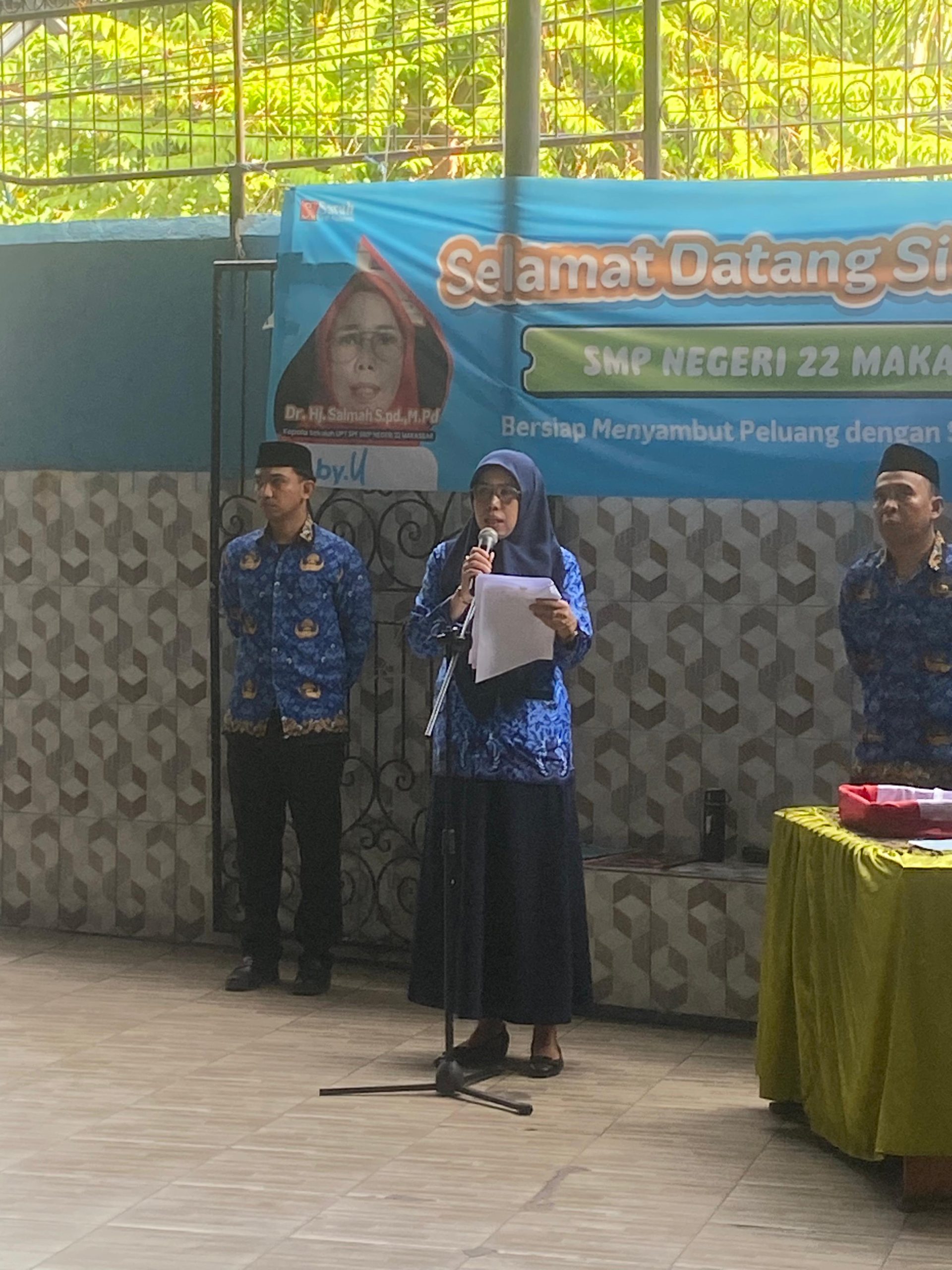 Kepala UPT SPF SMP Negeri 22 Makassar, Dr. Hj. Salmah, S.Pd., M.Pd., bertindak sebagai pembina upacara. Dalam amanatnya, beliau menekankan pentingnya menumbuhkan rasa nasionalisme dan semangat kebersamaan di kalangan peserta didik.