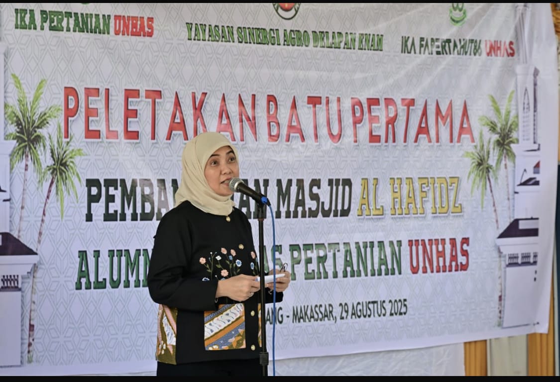 BN Online, Makassar –Wakil Wali Kota Makassar, Aliyah Mustika Ilham, menghadiri sekaligus melakukan peletakan batu pertama pembangunan Masjid Al-Hafidz yang digagas oleh Alumni Fakultas Pertanian Universitas Hasanuddin, Jumat (29/08/2025).