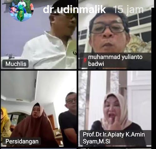 Dalam unggahan rapat virtual yang dibagikan dr Udin, tampak sejumlah legislator ikut serta, di antaranya Wakil Ketua DPRD Anwar Faruq, Muchlis Misbah, Budi Hastuti, Eshin Usmani Nur Rahman, Meinsani Kecca, Muh. Yulianto Badwi, Prof. Dr. Ir. Apiyati K Amin Syam, serta beberapa staf bagian persidangan.