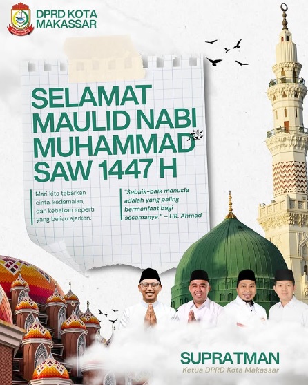 BN Online, Makassar –DPRD Kota Makassar mengucapkan Selamat Memperingati Maulid Nabi Muhammad SAW 1447 Hijriah pada Jumat (5/9/2025) hari ini.