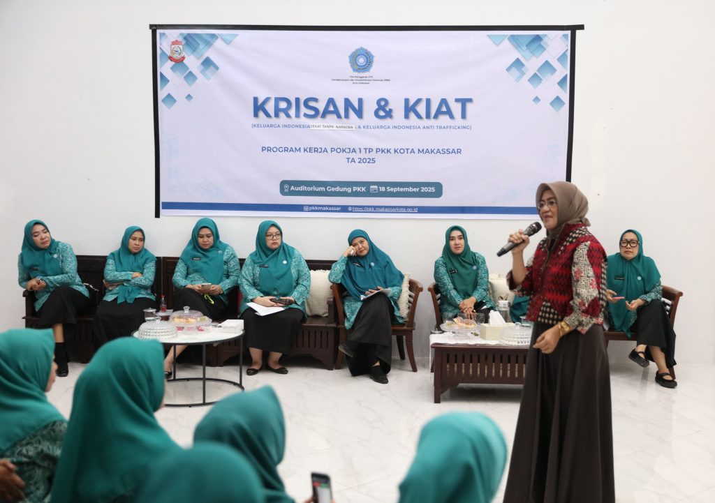 BN Online, Makassar–TP PKK Kota Makassar melalui Pokja I menggelar sosialisasi Keluarga Indonesia Sehat Tanpa Narkoba (Krisan) dan Keluarga Indonesia Anti Trafficking (Kiat) di Auditorium pada Kamis (19/9/2025).