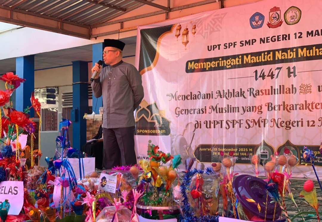 Dalam kesempatan tersebut, Kepala UPT SPF SMPN 12 Makassar, La Ode Imam Sutrisno, mengatakan bahwa peringatan Maulid Nabi merupakan momentum penting untuk menanamkan nilai-nilai akhlak Rasulullah kepada generasi muda.