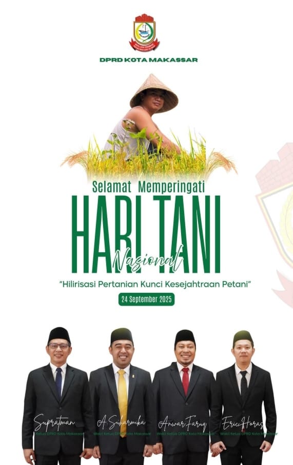 BN Online, Makassar – DPRD Kota Makassar mengucapkan selamat Hari Tani Nasional 2025, yang diperingati pada Rabu (24/9/2025) hari ini.