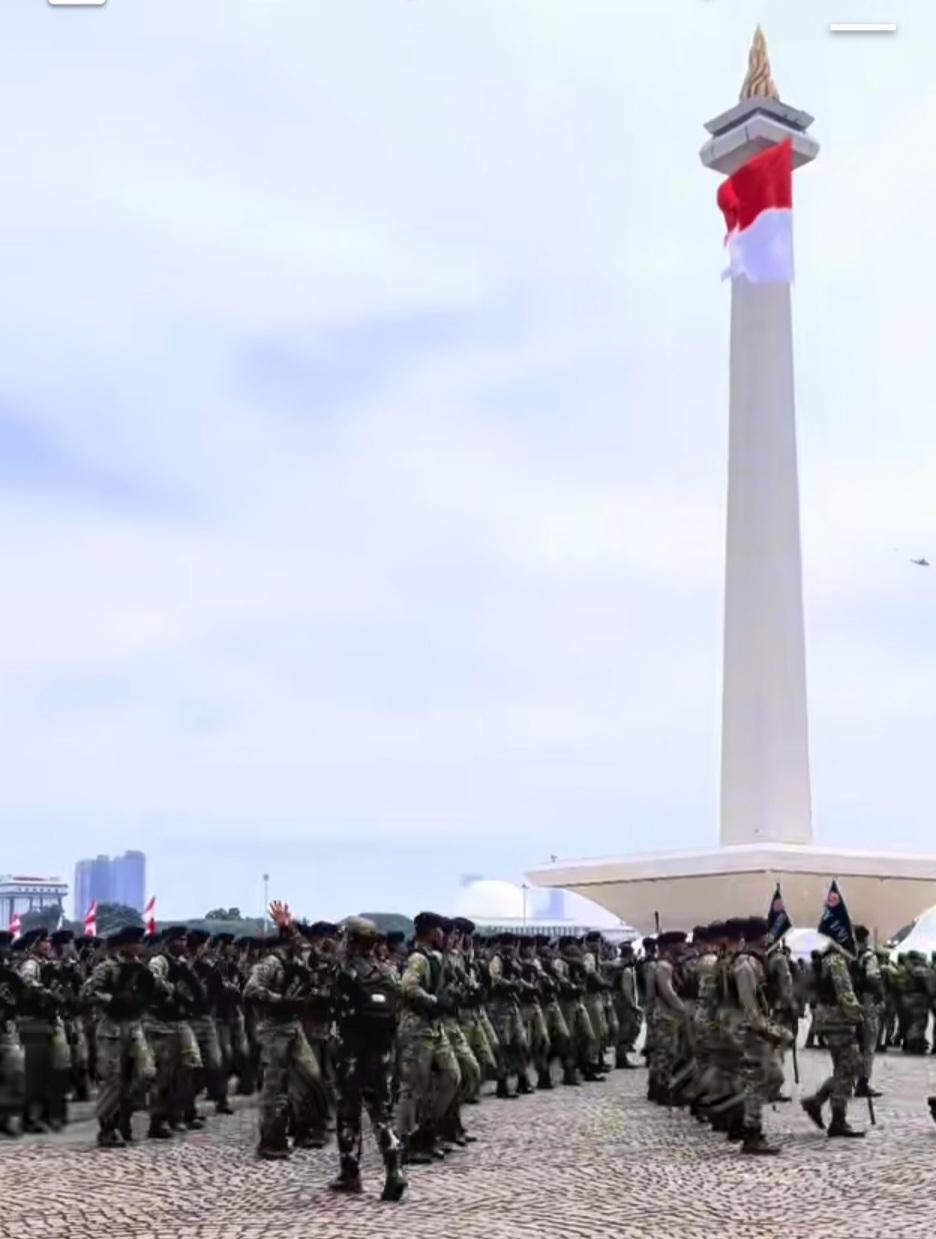 BN Online, Jakarta— Puncak perayaan Hari Ulang Tahun ke-80 Tentara Nasional Indonesia (TNI) berlangsung meriah di kawasan Monumen Nasional (Monas), Jakarta Pusat, hari ini. Berbagai rangkaian acara disuguhkan dari pembagian sembako untuk masyarakat, Panggung Rakyat sebagai hiburan publik, hingga demonstrasi aksi gabungan ketiga matra TNI. Tak ketinggalan, parade besar sebagai simbol kebesaran militer menjadi sorotan utama, Minggu 5 Oktober 2025.
