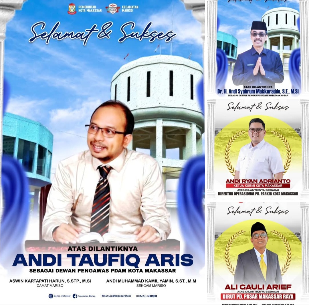 BN Online, Makassar—Pemerintah Kecamatan Mariso Kota Makassar menyampaikan ucapan Selamat dan Sukses atas pelantikan: