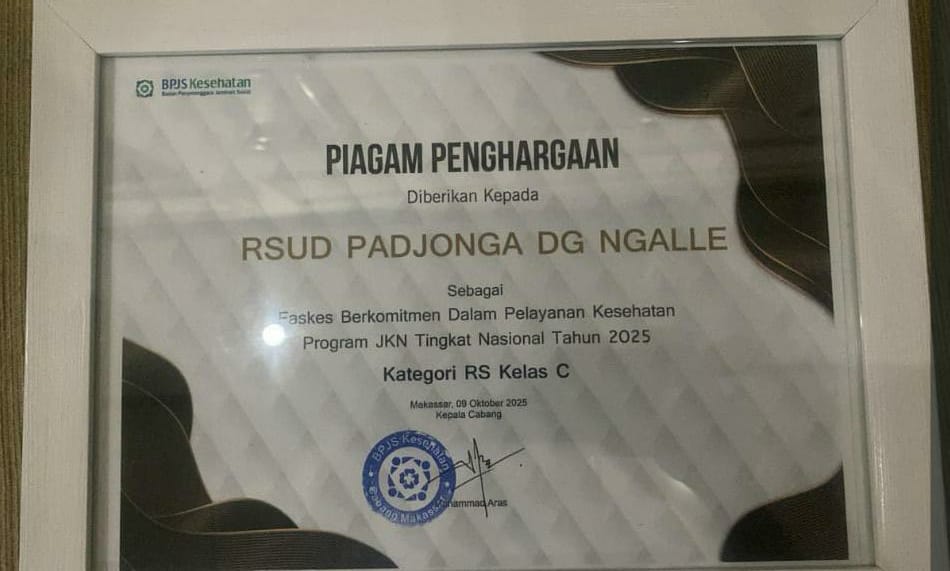 BN Online, Takalar-–Rumah Sakit Umum Daerah (RSUD) H.Padjonga daeng ngalle mencatatkan prestasi gemilang dengan meraih penghargaan sebagai Fasilitas Kesehatan Tipe C terbaik se-kanca BPJS Makassar tahun 2025 dari Badan Penyelenggara Jaminan Sosial (BPJS) Kesehatan Cabang Makssar.