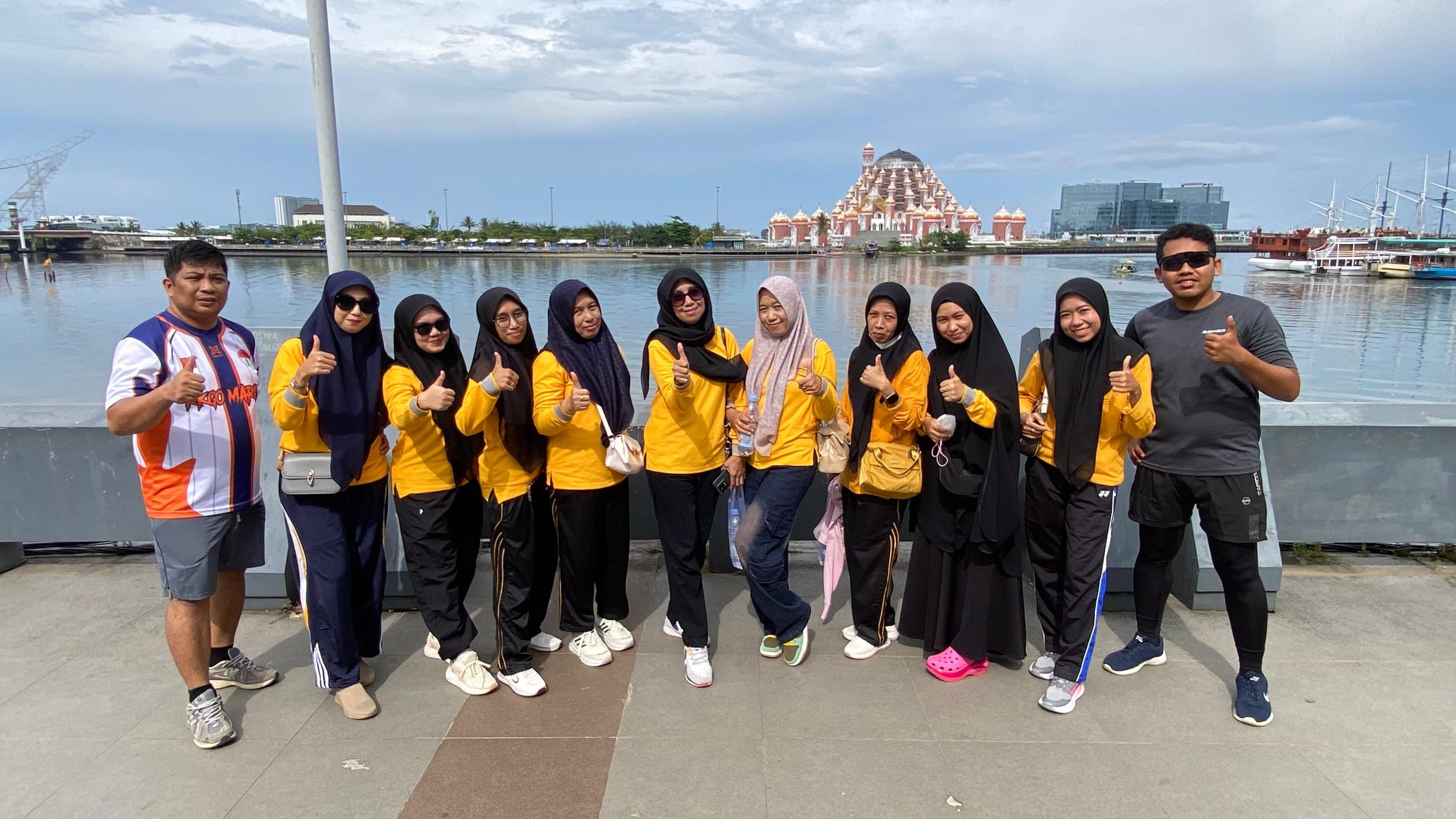 BN Online, Makassar—Dalam semangat kebersamaan dan cinta terhadap kota tercinta, Kepala UPT SPF SDI Mariso 2 Makassar, Rahmawati, S.Pd., Gr., M.Pd., bersama para guru dan tenaga kependidikan turut serta meramaikan kegiatan Jalan Sehat HUT ke-418 Kota Makassar, yang digelar di kawasan Anjungan Pantai Losari, Sabtu (08/11/2025).