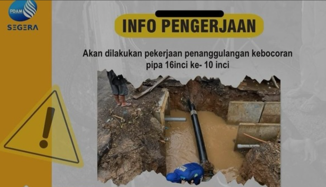 BN Online, Makasar—-PDAM Makassar, menjadwalkan pengerjaan penanggulangan kebocoran pipa berdiameter 16 inci ke 10 inci di Jalan Haji Kalla mulai hari ini, Rabu (12/11/2025). Kegiatan perbaikan tersebut diperkirakan berlangsung selama 1 x 24 jam.