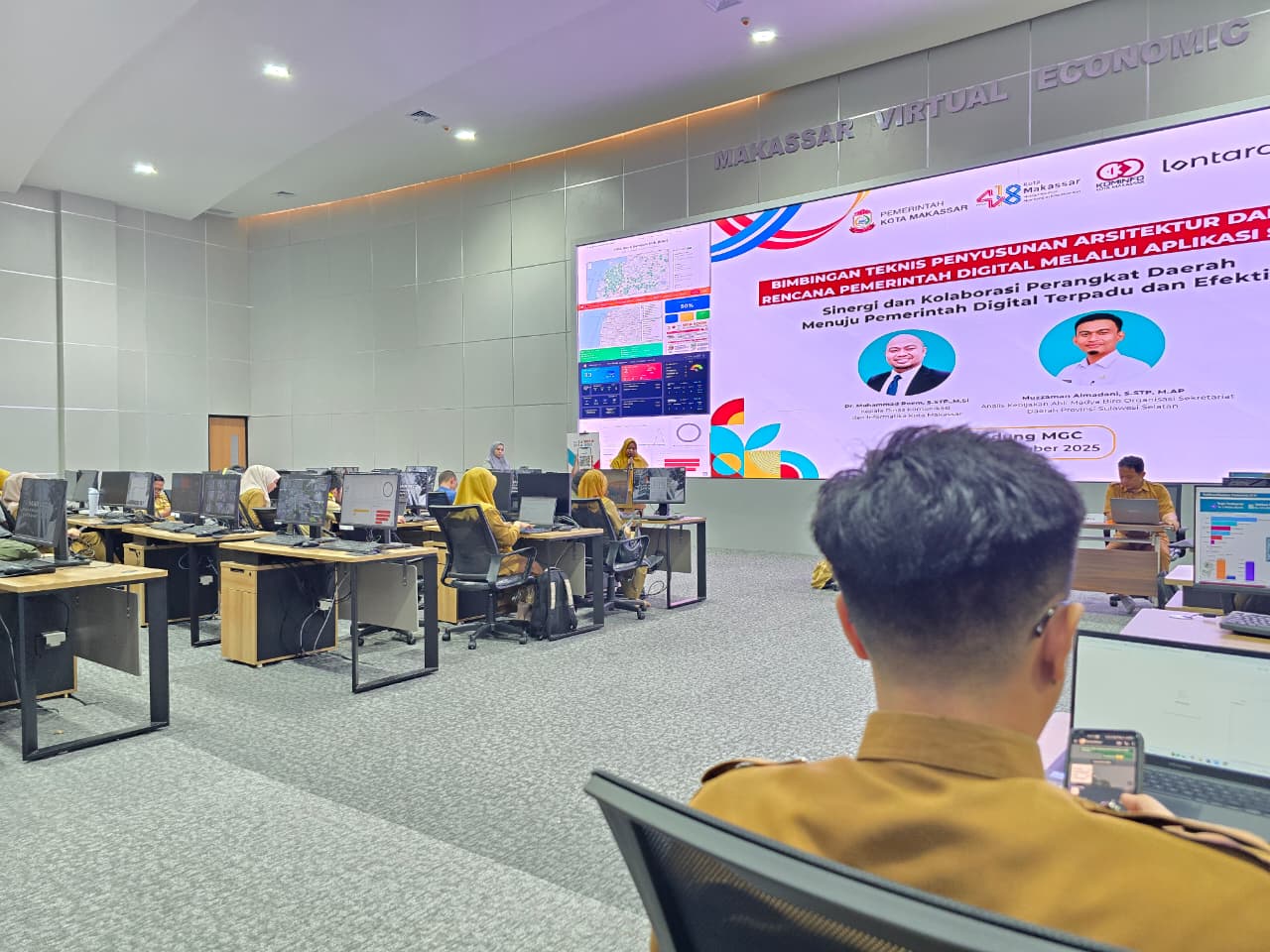 BN Online, Makasssar—Dinas Komunikasi dan Informatika (Kominfo) Kota Makassar menggelar Bimbingan Teknis (Bimtek) Penyusunan Arsitektur dan Peta Rencana Pemerintah Digital melalui SIA SPBE. Berlangsung di Gedung Makassar Government Center lantai 7, Selasa (11/11/2025).
