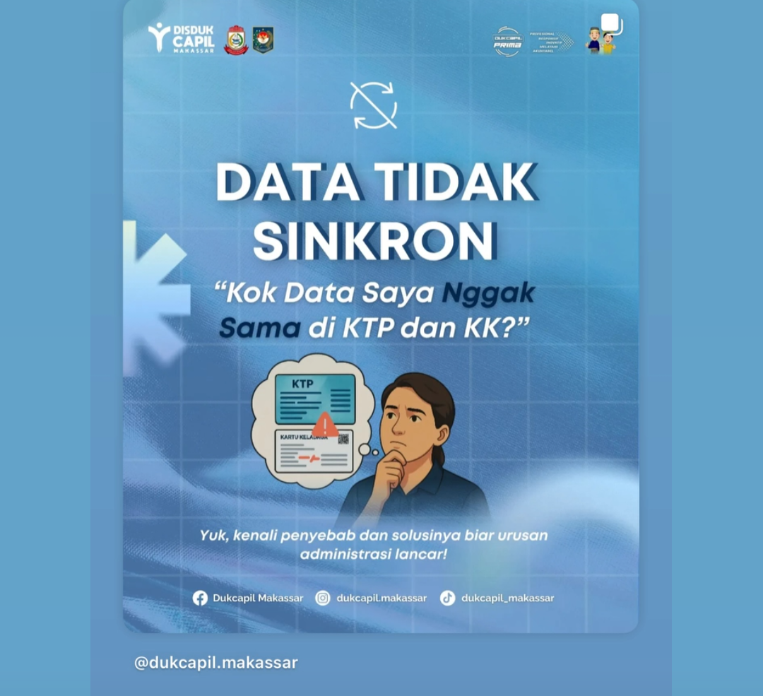 BN Online, Makassar — Demi meningkatkan efektivitas dan efisiensi pelayanan administrasi kependudukan, Pemerintah Kota Makassar melalui Dinas Kependudukan dan Pencatatan Sipil (Disdukcapil) resmi melimpahkan sejumlah layanan kependudukan ke tingkat Kecamatan. Informasi ini disampaikan melalui unggahan resmi media sosial Diskominfo Kota Makassar pada Selasa, 18 November 2025.
