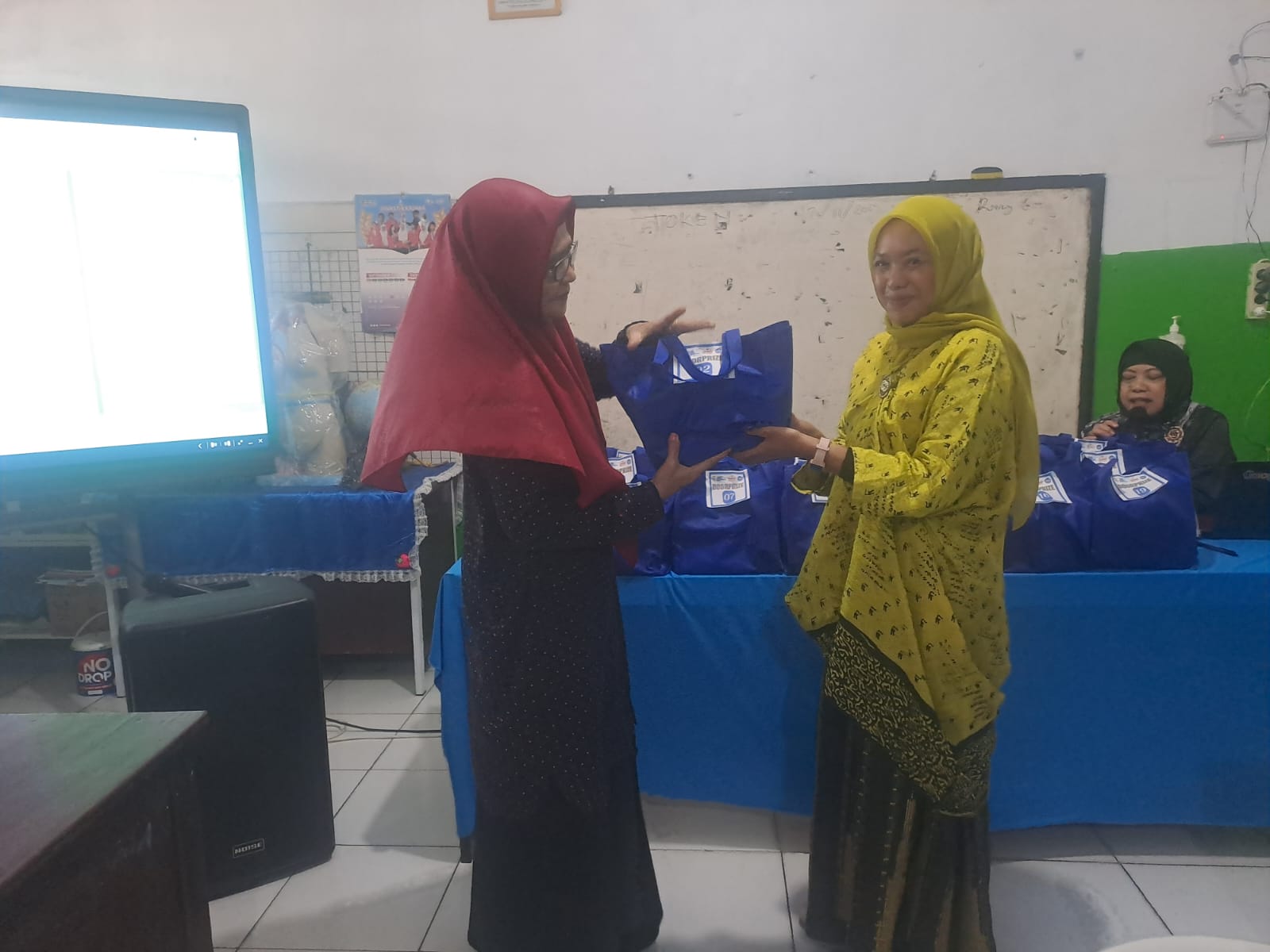 Selain penyerahan penghargaan, kegiatan ini juga dirangkaikan dengan pembagian 21 paket sembako sebagai doorprize bagi para guru dan pegawai.