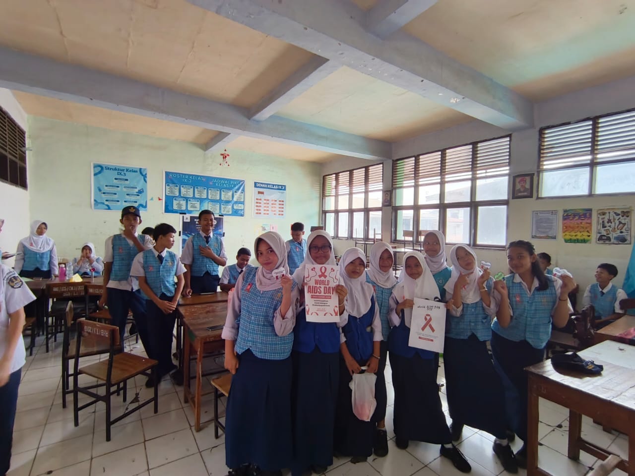 BN Online, Makassar— Dalam rangka memperingati Hari HIV Sedunia, Pusat Informasi dan Konseling Remaja (PIK-R) UPT SPF SMP Negeri 4 Makassar melaksanakan kegiatan sosialisasi bahaya HIV/AIDS secara serentak di setiap kelas. Kegiatan ini melibatkan pengurus PIK-R, guru pendamping, dan seluruh peserta didik, pada Senin (01/12/2025).