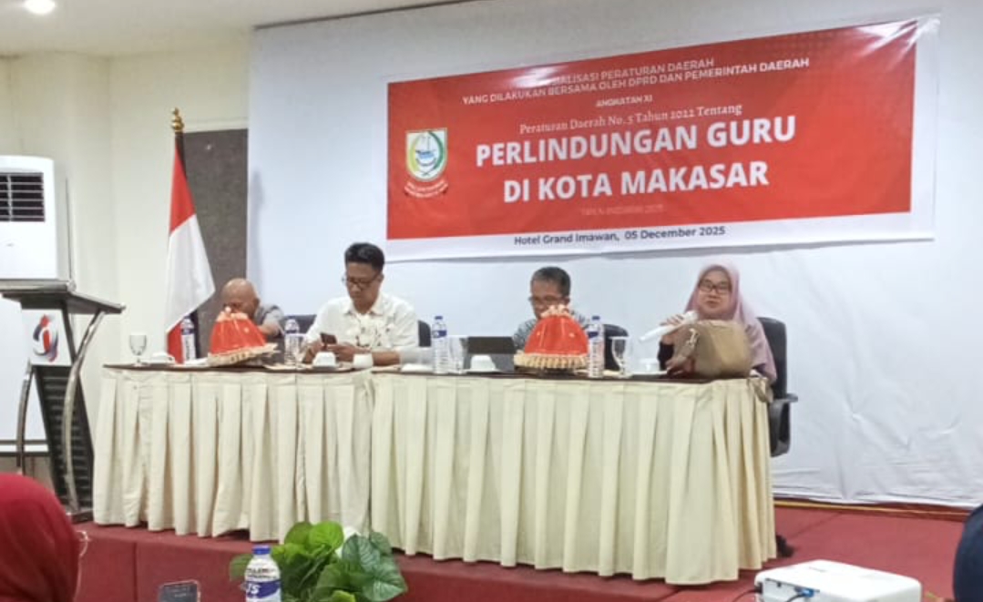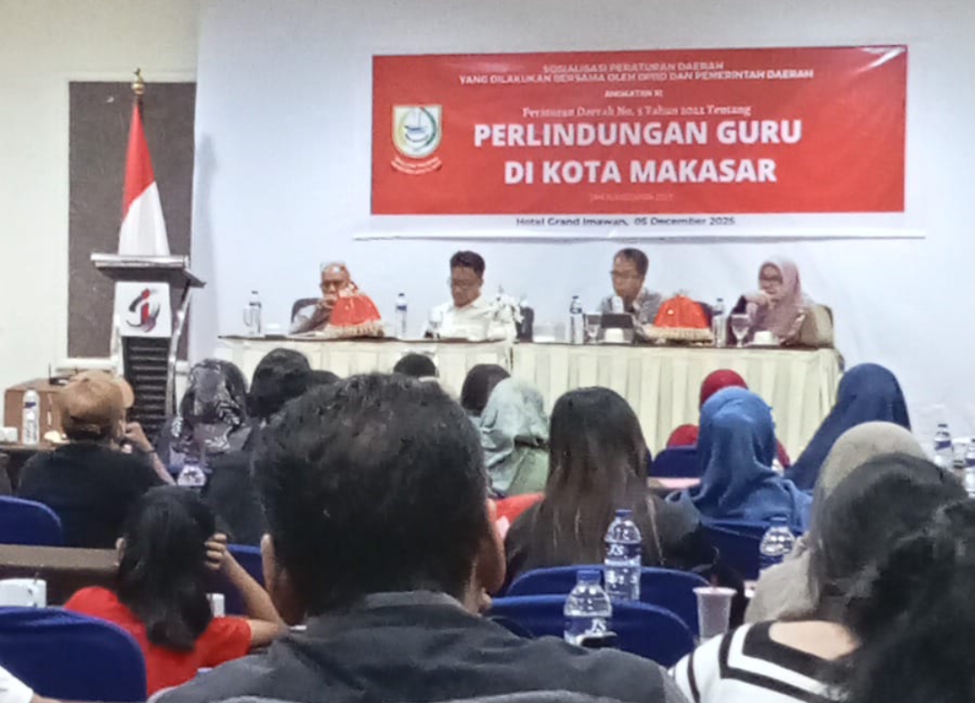 BN Online Makassar — DPRD Kota Makassar bersama Pemerintah Kota Makassar kembali melaksanakan kegiatan sosialisasi peraturan daerah sebagai bagian dari program tahun anggaran 2025. Kali ini, tema yang diangkat adalah Peraturan Daerah Kota Makassar Nomor 5 Tahun 2022 tentang Perlindungan Guru. Kegiatan Angkatan XI tersebut digelar pada Jumat, 5 Desember 2025 bertempat di Hotel Grand Imawan, Jalan Pengayoman Nomor 39 Makassar, pukul 09.00 WITA.