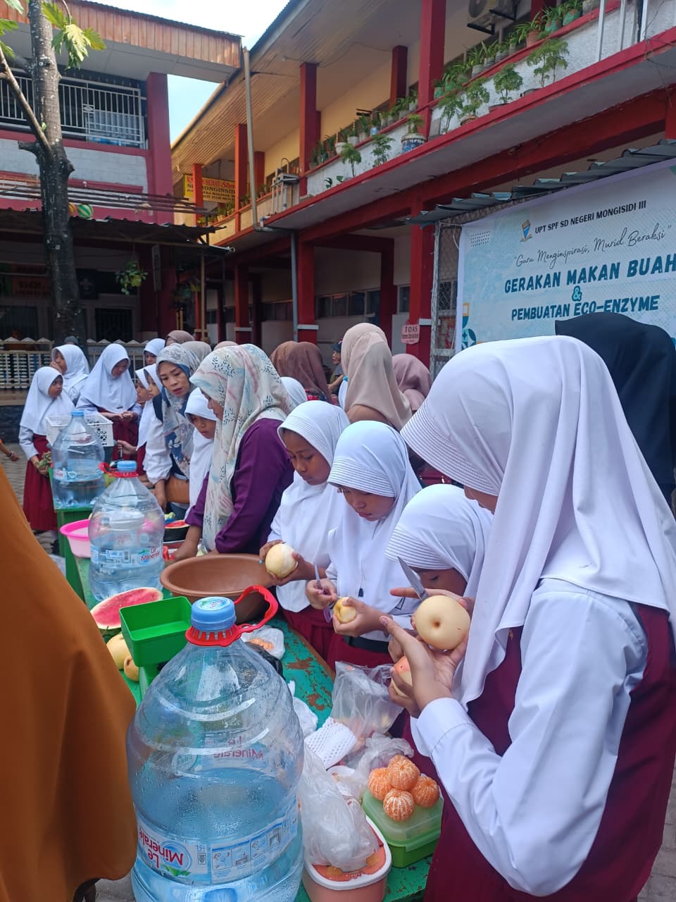 Sambungnya, Syurawahyuni mengajak seluruh warga sekolah dan orang tua untuk terus membiasakan konsumsi buah serta mengurangi sampah rumah tangga dengan memanfaatkan eco-enzyme.