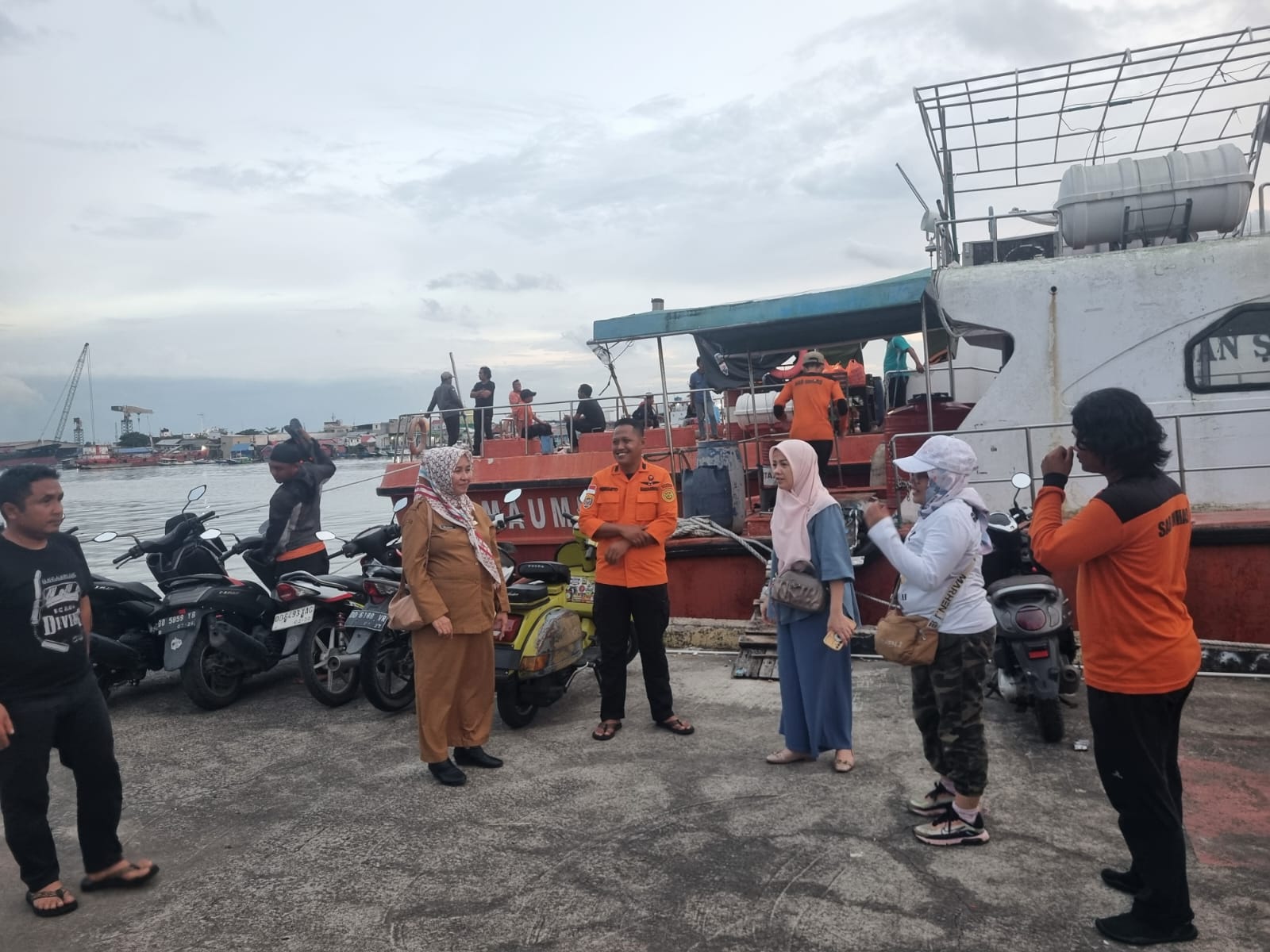 Bantuan tersebut diserahkan langsung di lokasi pencarian sebagai bentuk dukungan moril dan kepedulian terhadap para petugas yang sejak pagi hari terus berjibaku melakukan operasi pencarian di laut.